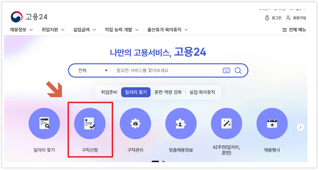 (1) 먼저 고용24 에서 구직신청을 해야 하며