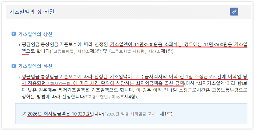 1. 2026년 실업급여 최소금액 및 상한액 기준